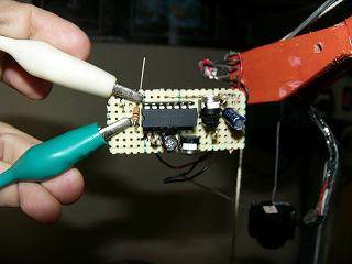 はい、そうです。なかなか時間取れず、24日の20時過ぎにまでなってから、大急ぎでありあわせの電子部品寄せ集めて点滅光装置作っていたわけです。 LEDはただ点滅するのではなく、電球使った実際の航空障害灯のように、柔らかな感じで点滅するようにしておきました。(3つ目の画像、撮影間隔は1/4秒くらい) 点滅周期(最長3秒くらい)と、明るく(暗く)なるまでの時間(1秒くらいまで)は調整できるようになっています。「電子ホタル」とか言った電子工作キットがあったとおもいますが、それと中身はほぼ同じです。 暗くなったら作動するよう光センサーつけるつもりでしたが、ちょっと間に合いませんでした。