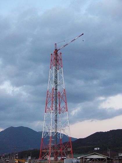 普通のクライミングクレーンと違い、一番下から全体を押し上げてからマストを差し込むようになっています。