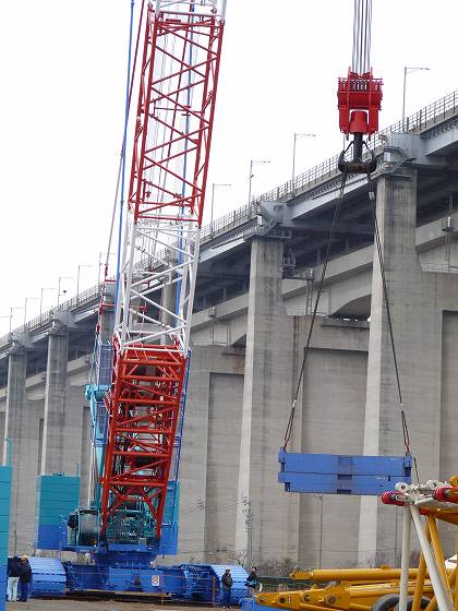ジブをこの上に着地させます。車輪は直径1m位で飛行機用に似た形です。充填圧力13.8bar。