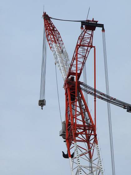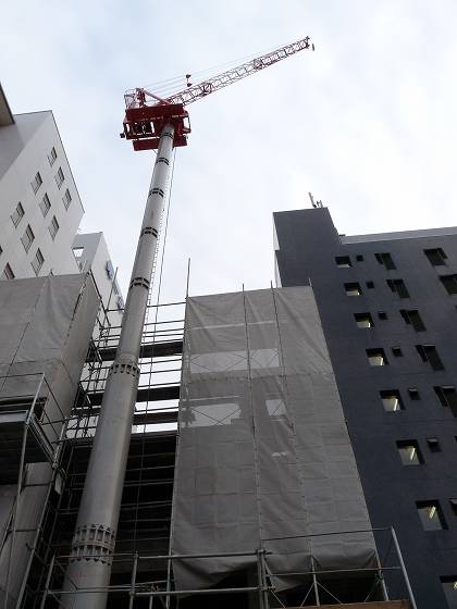 行きがけ見つけた鉄塔クレーンを頑張って写してみたらみごとにぼけちゃいました。鉄塔クレーンは先っぽ以外どれも見かけがほとんど同じようなのでこれではどこの何なのか分かりにくいです。